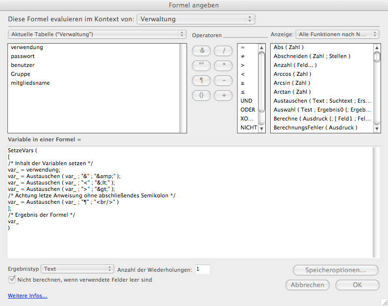 Variablen in FileMaker Pro Formelfeldern nutzen